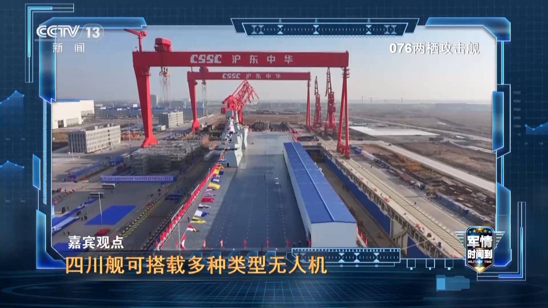rrrrr作为我国自主研制建造的076型两栖攻击舰首舰,又是推进海军转型建设发展,提升远海作战能力的关键装备,四川舰的满载排水量是4万余吨。
